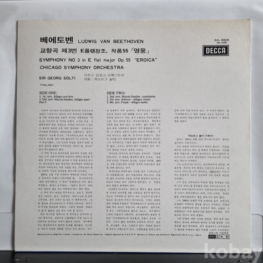 베토벤 Chicago Symphony Orchestra, Sir Georg Solti* – Symphony No.3 "Eroica"