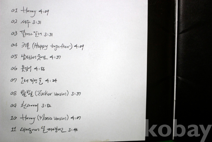 수록 곡 목은 사진을 참조하시기 바랍니다