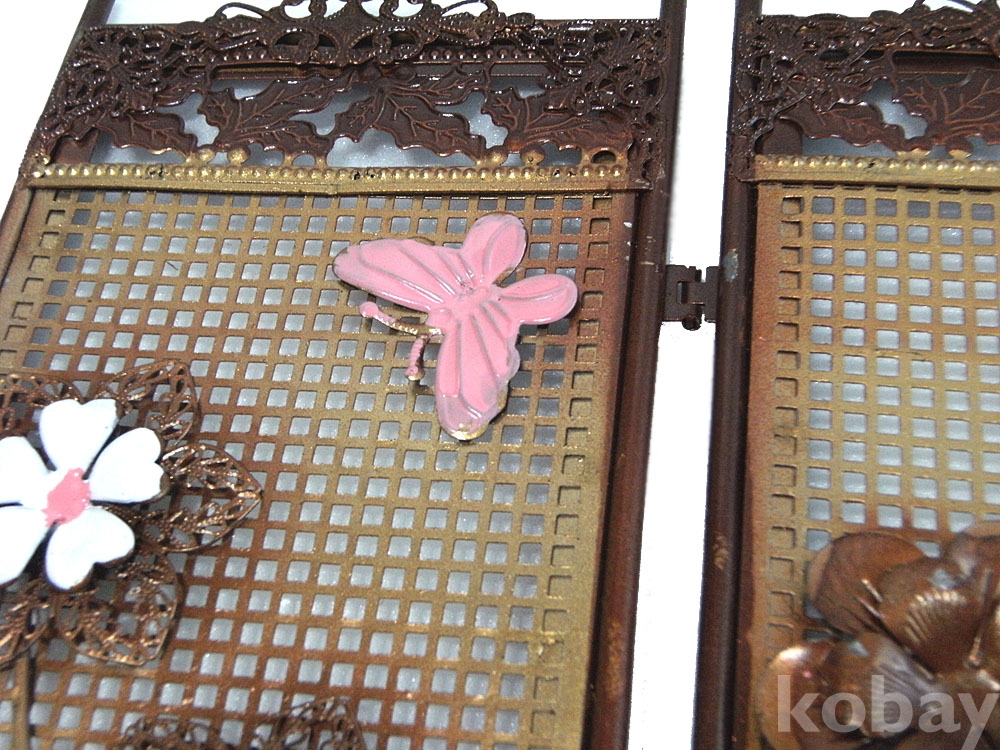 철재로 만들어진 미니어쳐병풍1점 입니다.