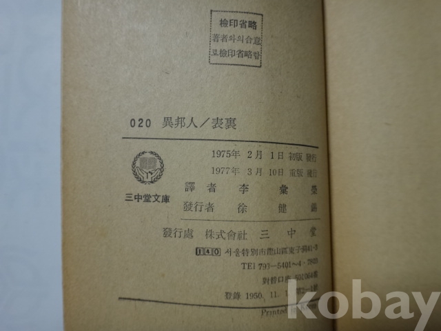 이방인, 표리 - 까뮈 (1977년, 삼중당)