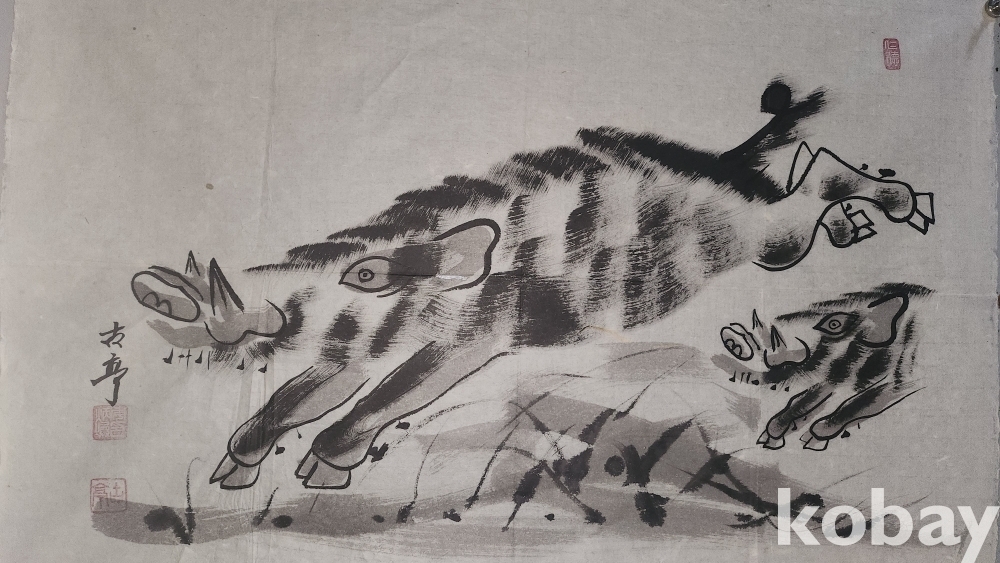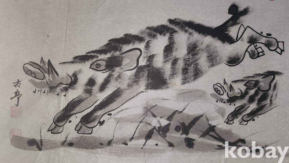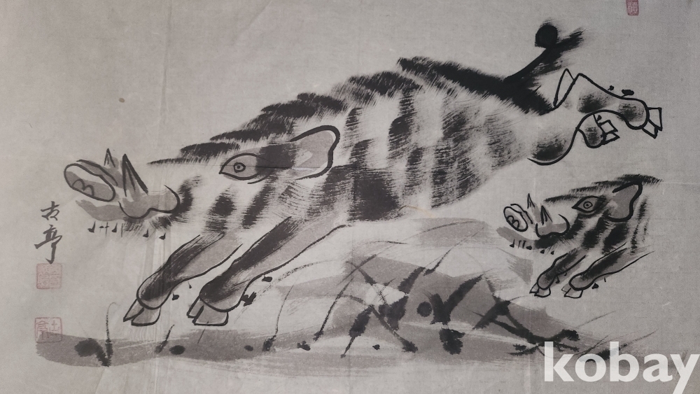 작품성이 덧보이는 멧돼지 그림입니다,