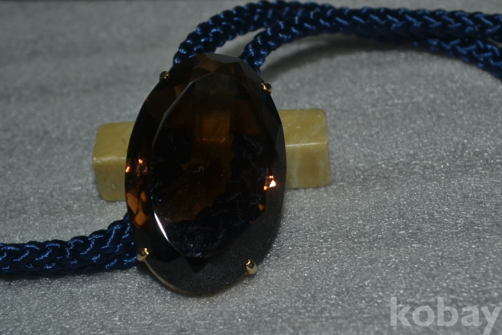 아름다운 고급 커팅각 디자인의 핸드메이드 대형지름의 진품 흑수정알 루프타이 목걸이 작품 입니다.