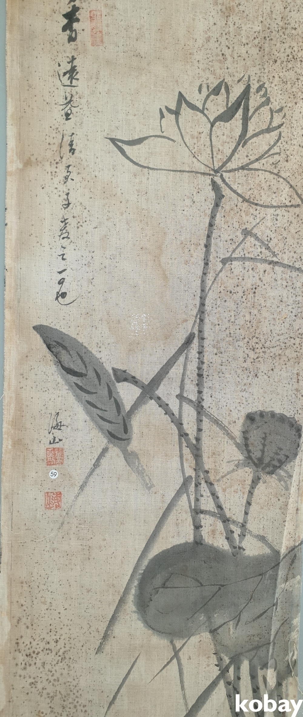 해산(海山) 作 천바닥에 그려진 수묵화(水墨畵)입니다,