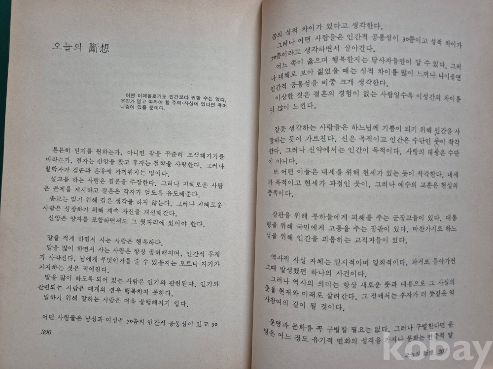 김형석(평안남도 대동: 1920) 에세이.