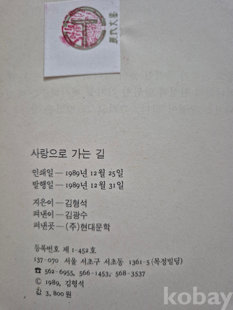 現代文學(주)에서 발행. 322쪽. 15.3X22.4X1.8cm