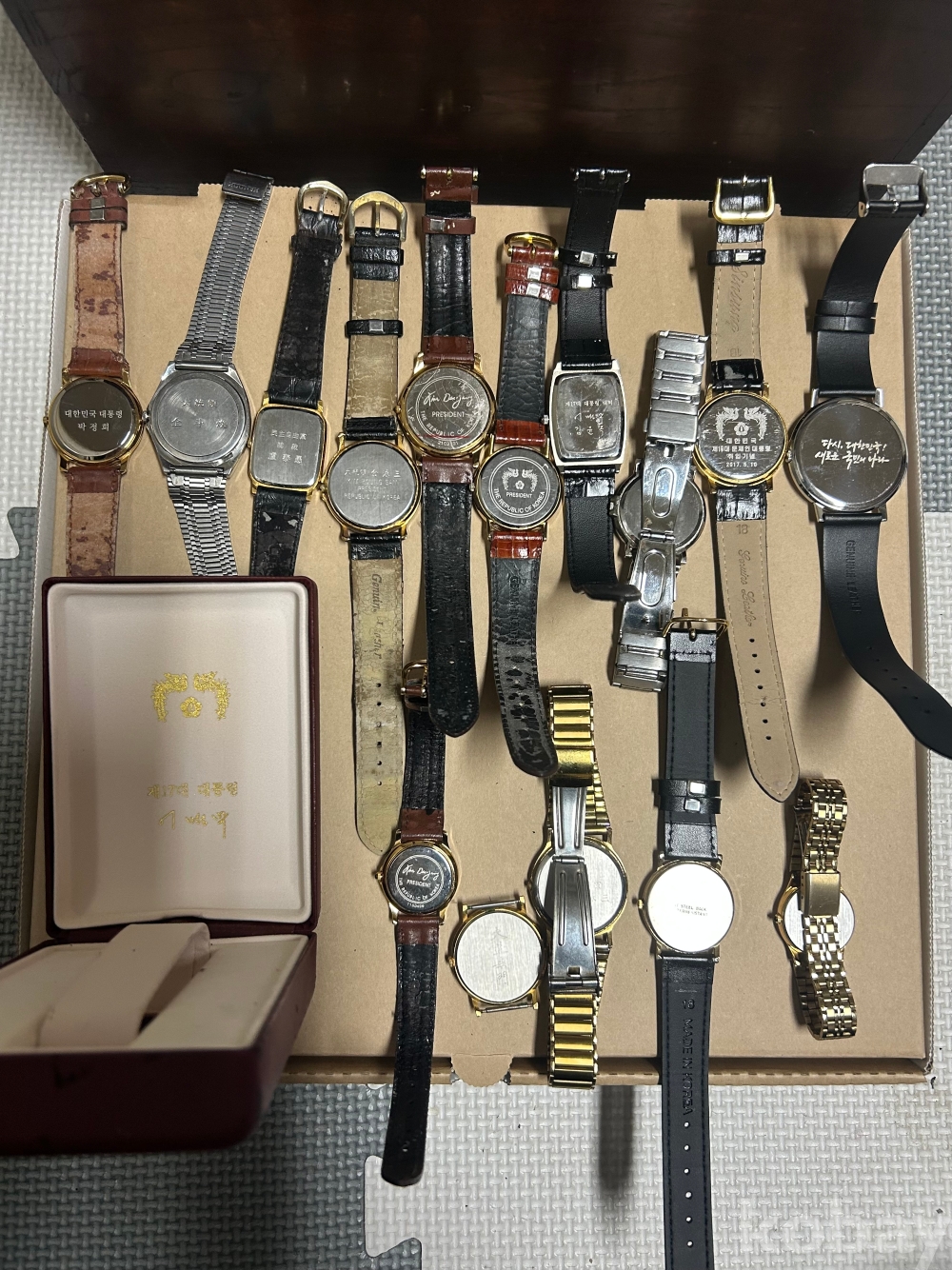 아마 역대 대통령 시계에 관심있는 분께는 좋은 기회라 생각하며 한점 한점 수집했던 세월과 욕심이 담겨 있지만 노욕은내려놓고 이젠 참주인께 전지 교체 비용도 안돼는 가격에 내놓습니다.