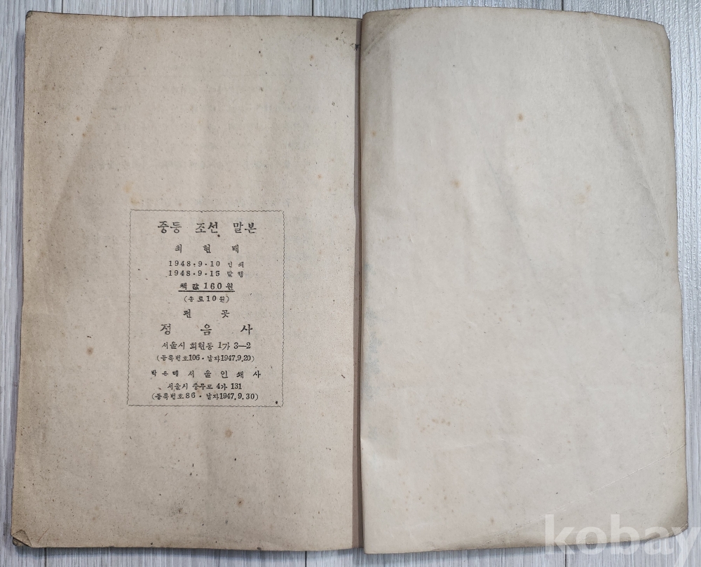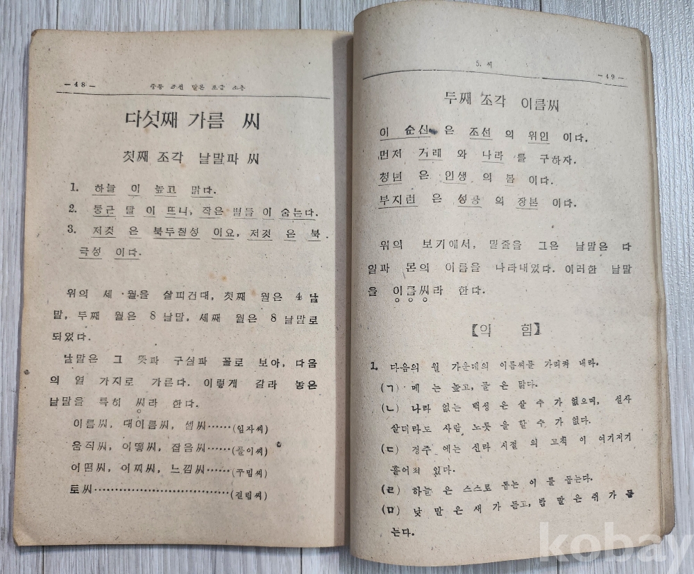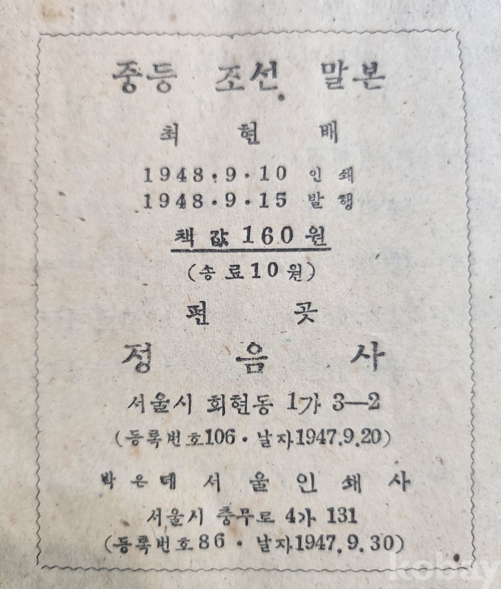 1948년 최현배지은 중등 조선말본(초급학년) 낙질파본없이 상태 양호합니다