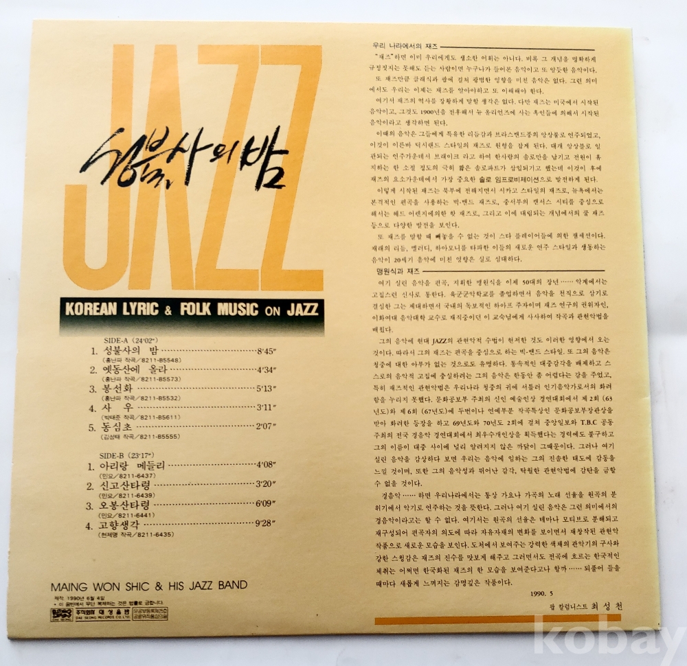 한국최초의 빅밴드째즈Lp/성불사의 밤