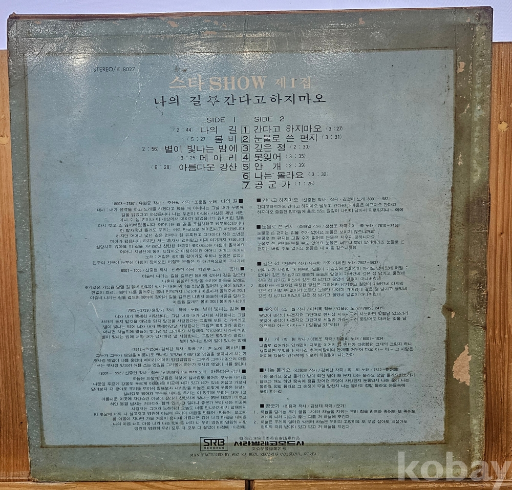 1980년도에 발매된 스타쇼 1집 음반으로 [ 김정미 /간다고 하지마오 ] [ 신중현 / 아름다운 강산 ] [ 박인수 / 봄비 ] [ 정훈희 / 안개 ] 등 당대 최고의 명곡만 수록되어 있는 명곡 명반 입니다.