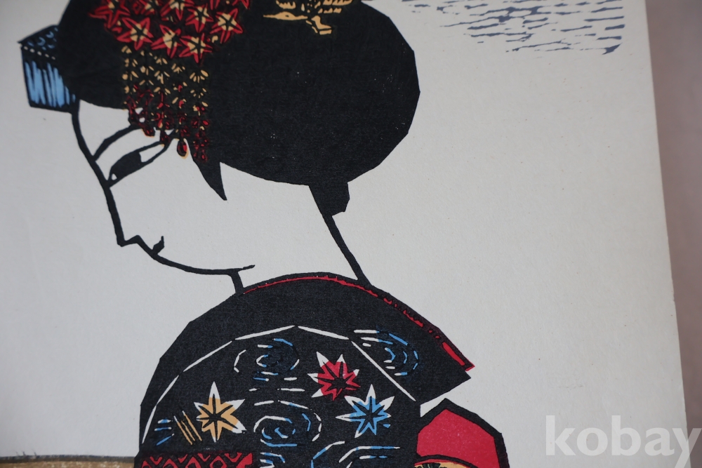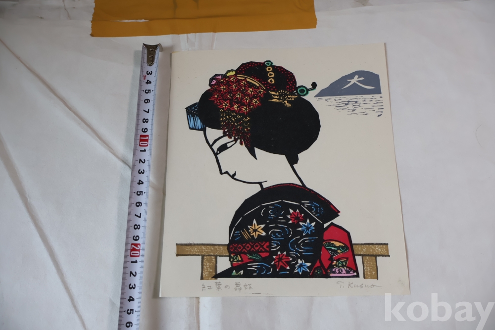 멋진 목판화 임니다 화가의 낙관이 보이는 우아한 명화 임니다 현대 목판화이며 화제와 화가의 연필 사인이 보이는 앙증맞은 여인 임니다