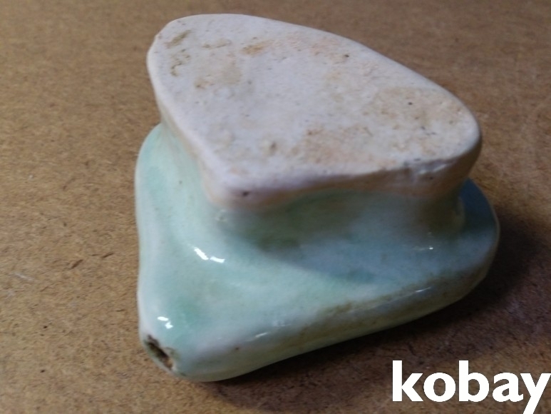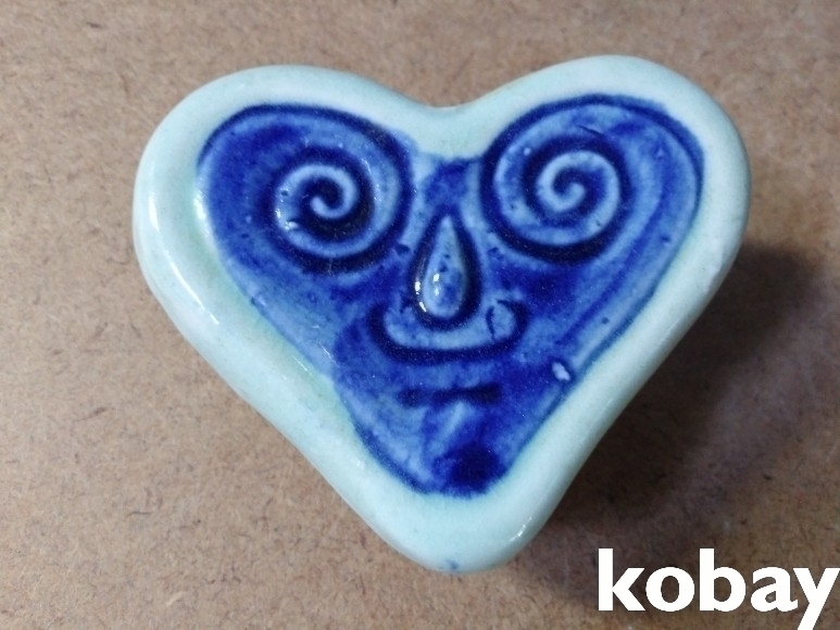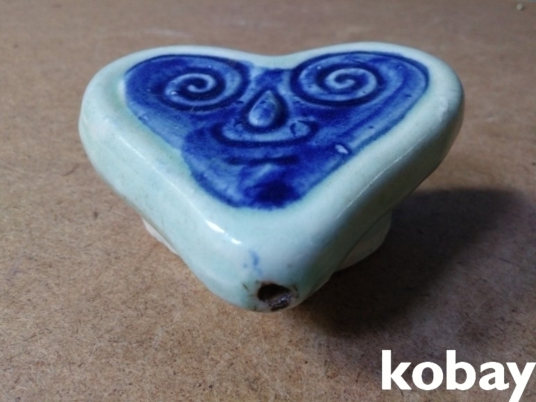 하트 모양에 인물 문양이 돌출로 있는 도자기 연적 입니다.