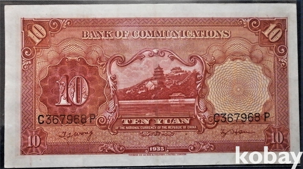 중국 교통은행 10원 민국24년
