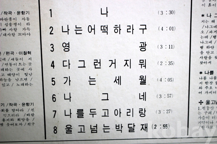 수록 곡 목은 사진을 참조하시기 바랍니다