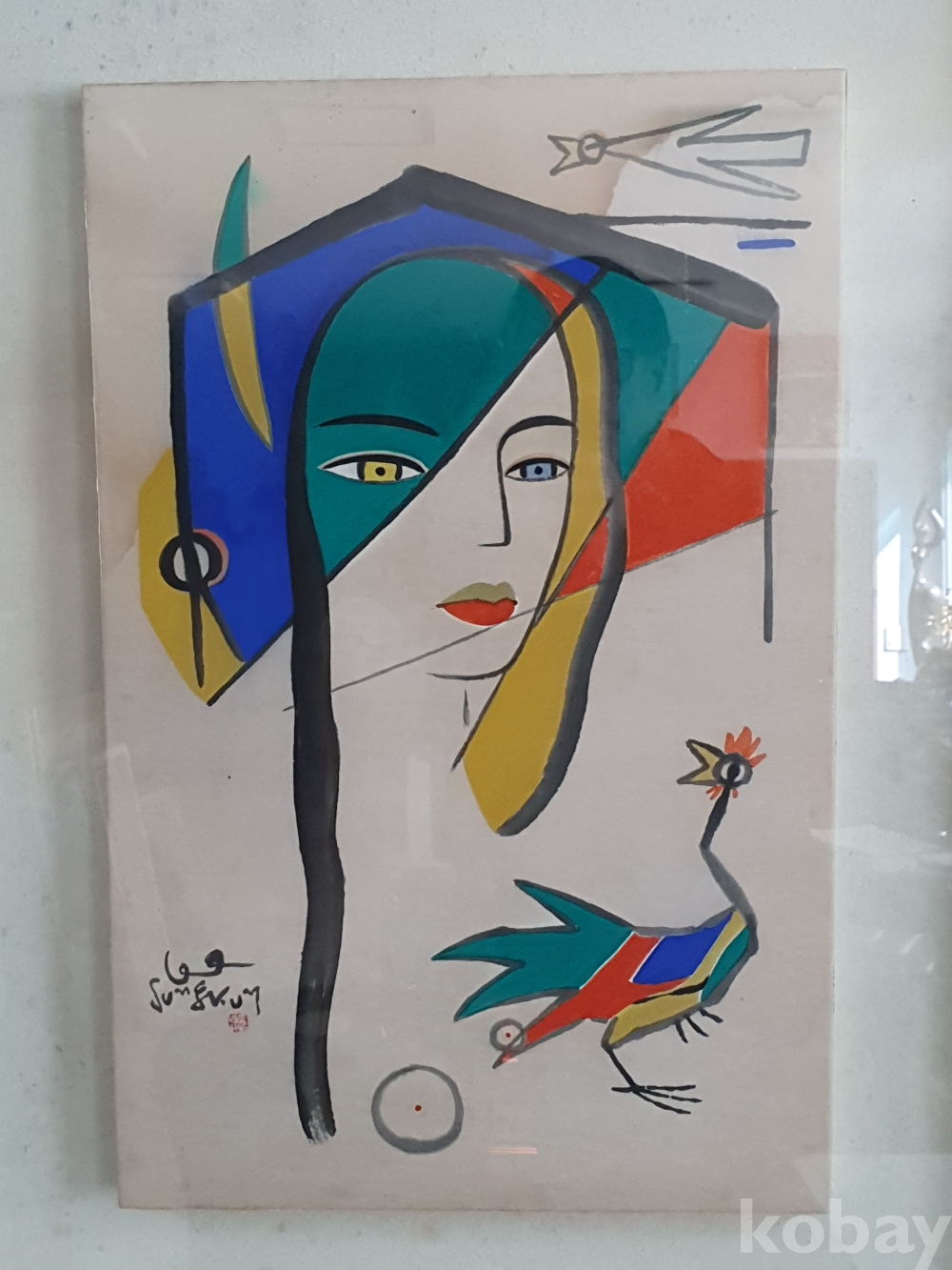 상 태: 그림 상단에 미세얼룩 과 액자 변지에 곰팡이 흔적있음