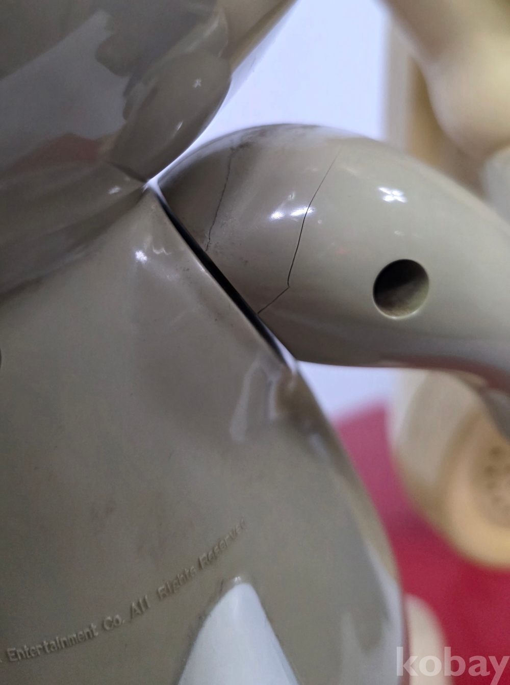 그러나 톰 형상에는 데미지가 있습니다. 겉으로 봐선 발견하기 어려우나 자세히 살피면, 톰의 가슴에 작은 나비 넥타이가 있는 것이 정상인데 탈락되어 없습니다. 또 세군데 실금이 보입니다.