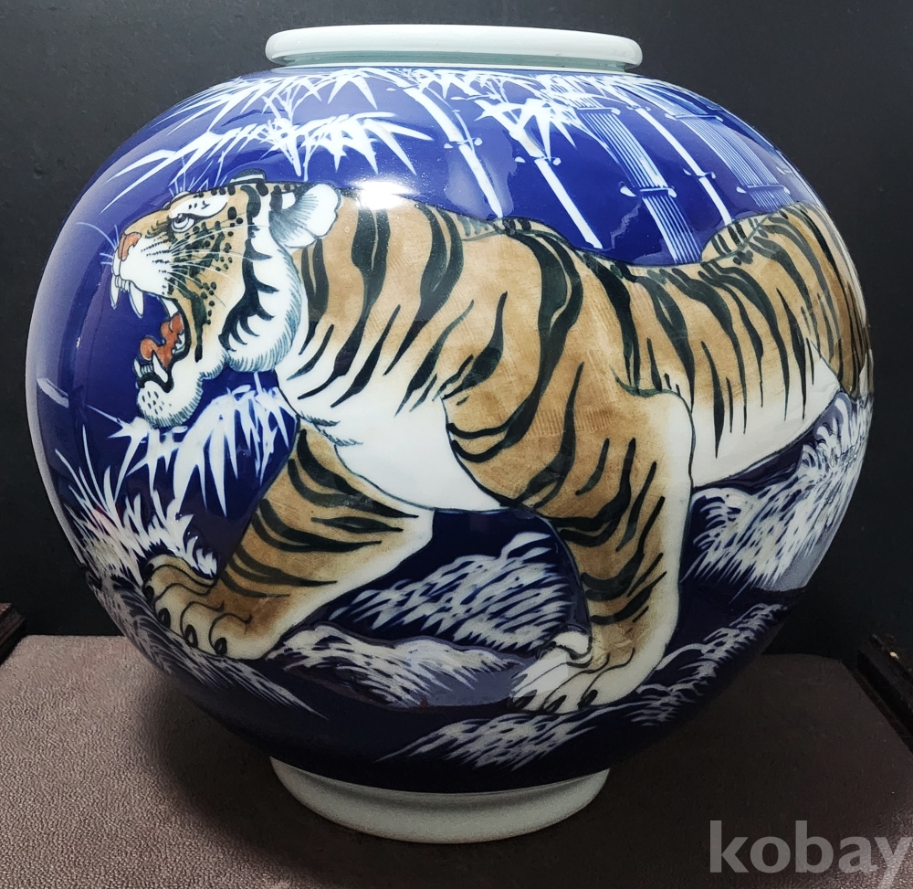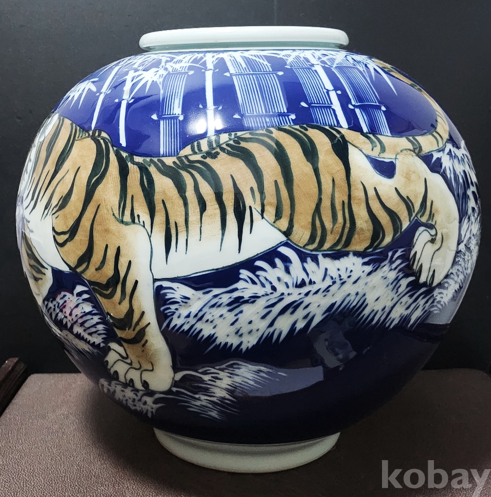 백자청화진사 맹호도문호 白磁靑華辰砂 猛虎圖紋壺 < 도예가 수결 작품 >