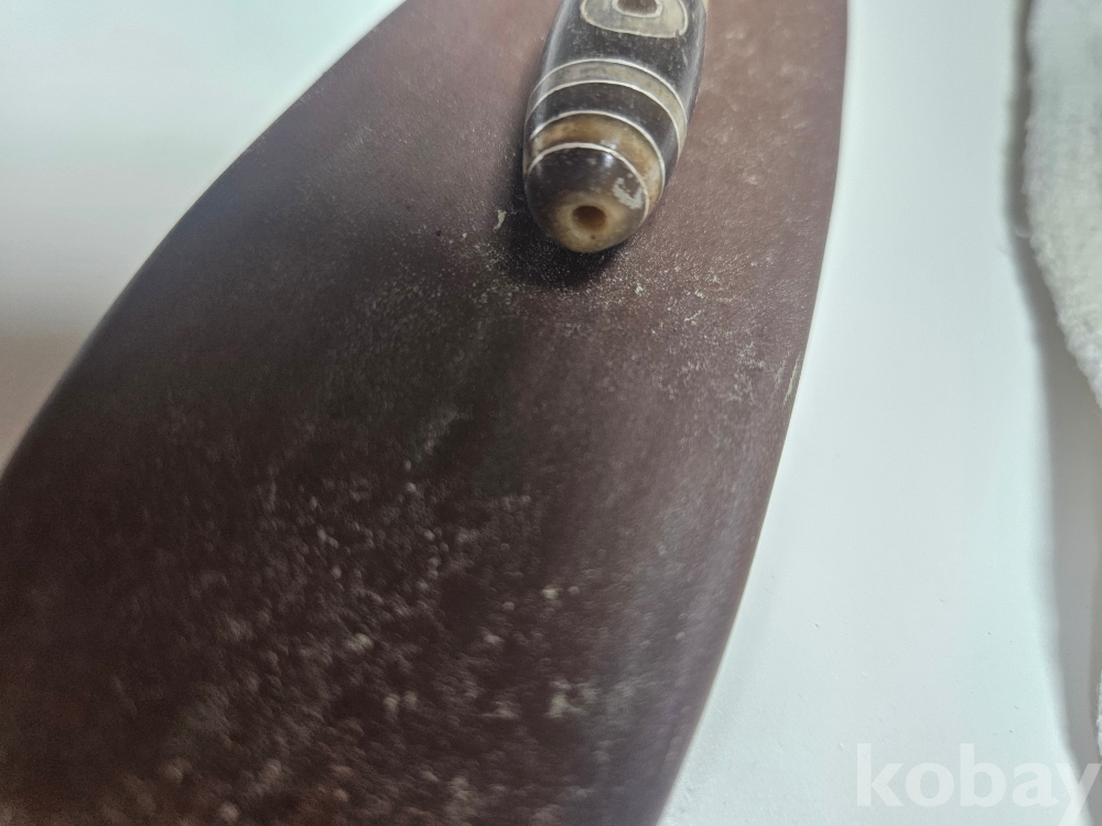 특히 본 천주는 일반적인 검정 바탕과는 달리, 은은한 황갈색 바탕에 은상감으로 처리된 고대 문양이 특징입니다.