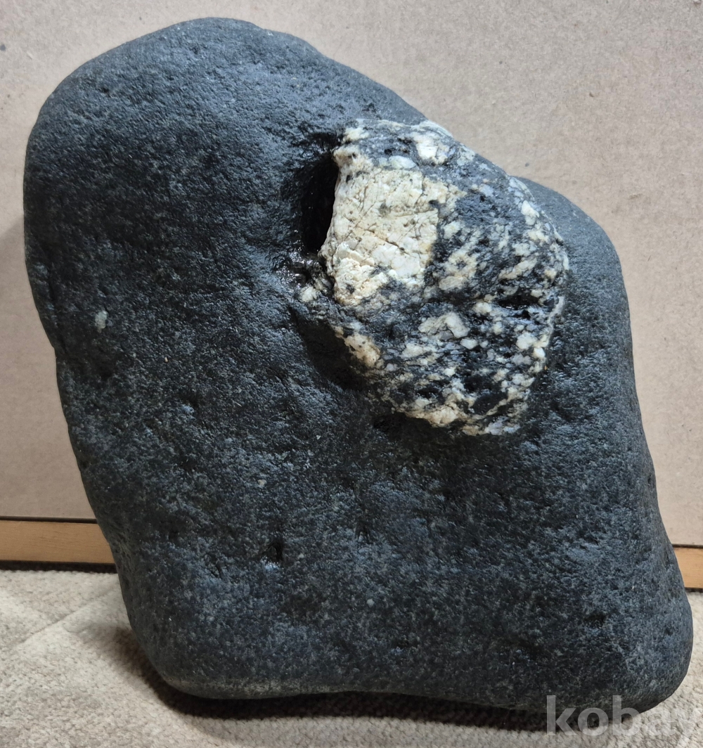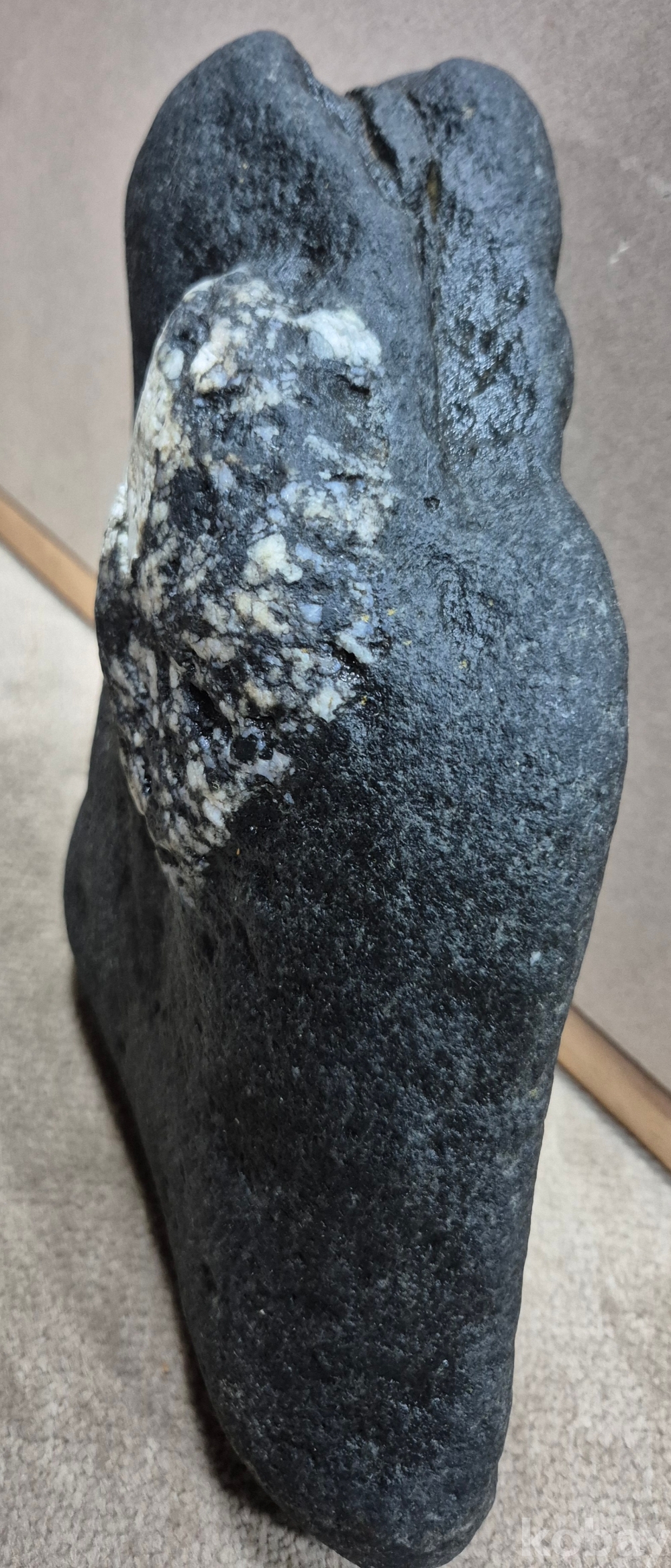 호피석으로는 보기 드문 이질석 모암에 복 두꺼비(소 또는 양) 모양의 호피석이 섞인 수석'입니다