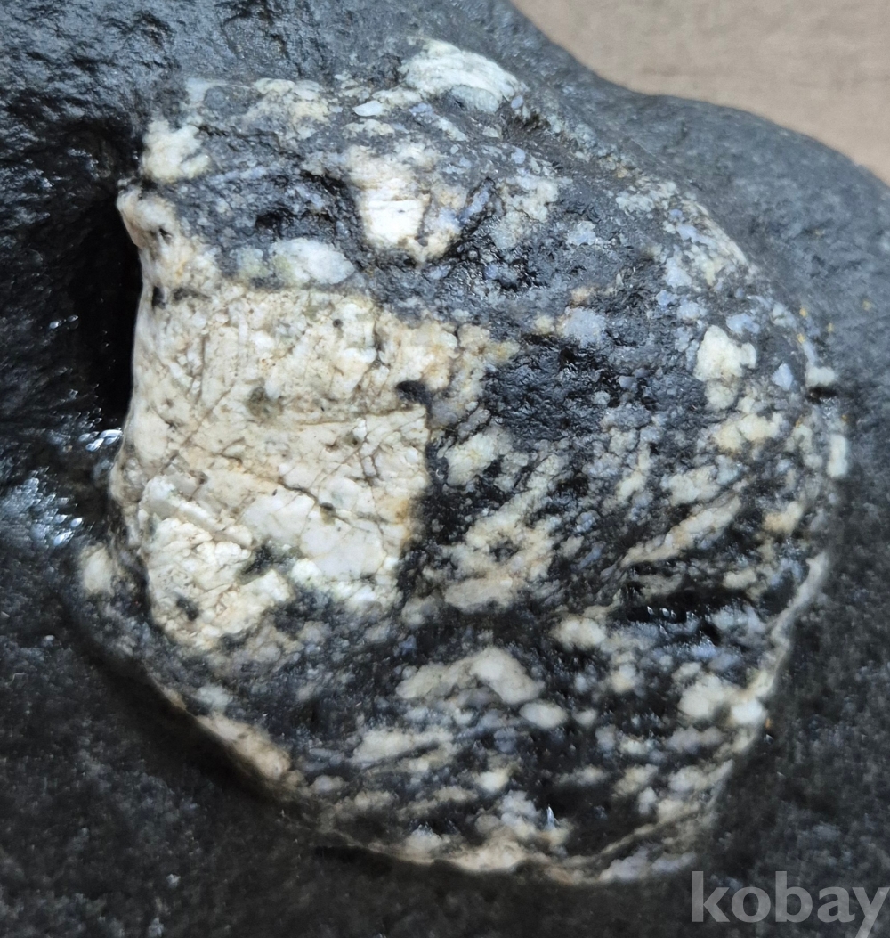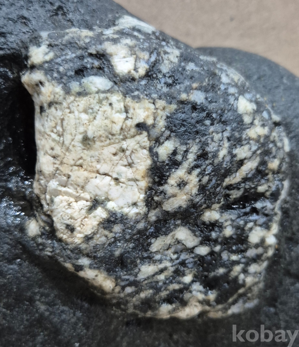 모암은 단단한 다른 이질석이며 우측 복두꺼비(소 또는 양) 문양석만 무주 호피석임
