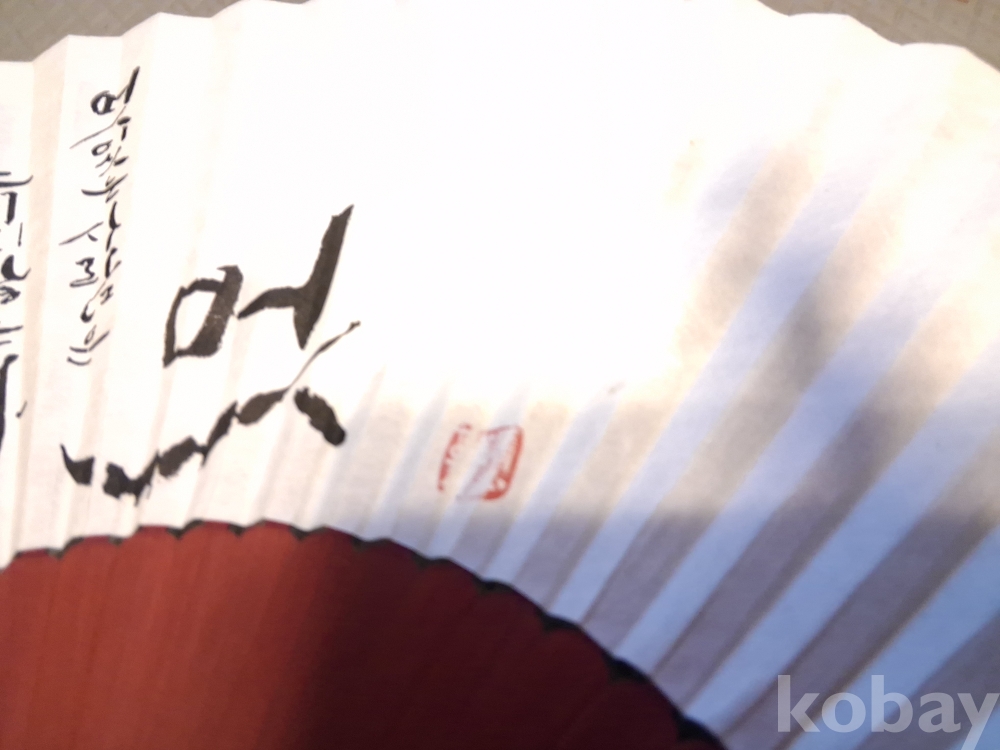 친필 글이 있는 고급 주칠 봉화죽선(峰華竹扇)으로