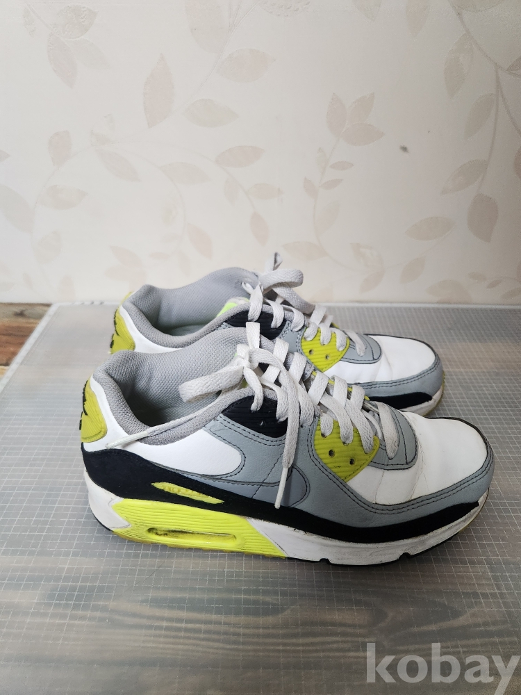 (땡처리) 나이키 에어맥스 90 흰/회/형광 색상 조합입니다