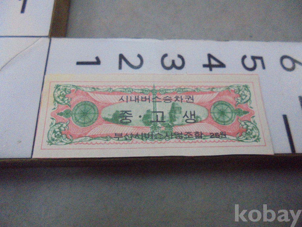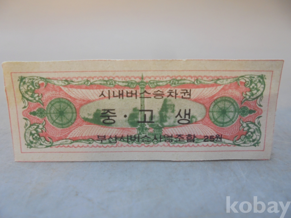 1975년 25원 부산 시내버스 승차권 미사용 입니다.