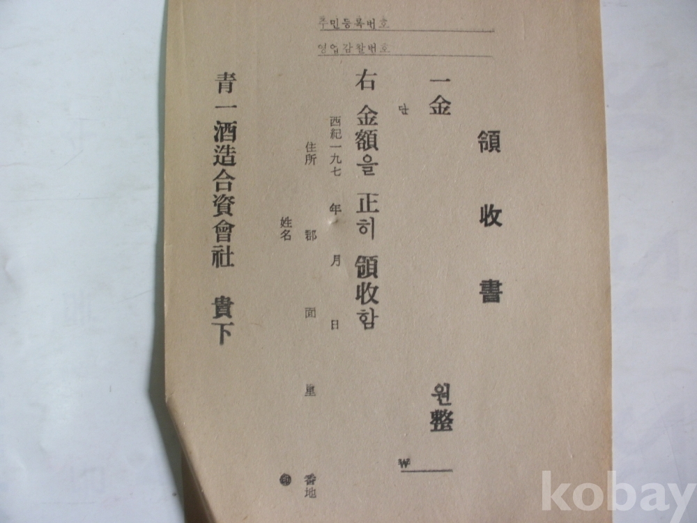 청일주조 합자회사 - 영수증 (1970년대)