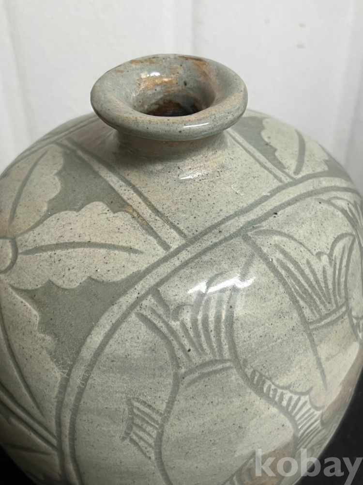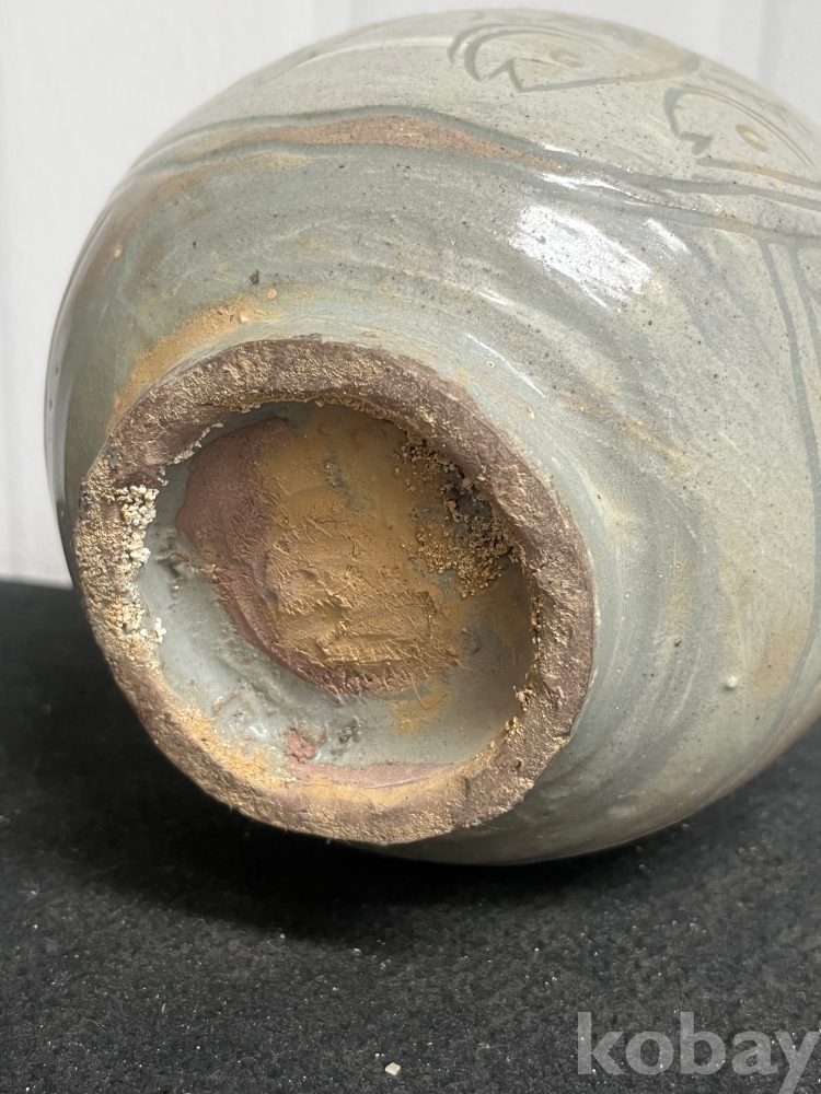 담백한 회청색 유약과 둥근 기형이 조화를 이루어 분청 특유의 자연스러운 미감을 잘 보여줍니다.