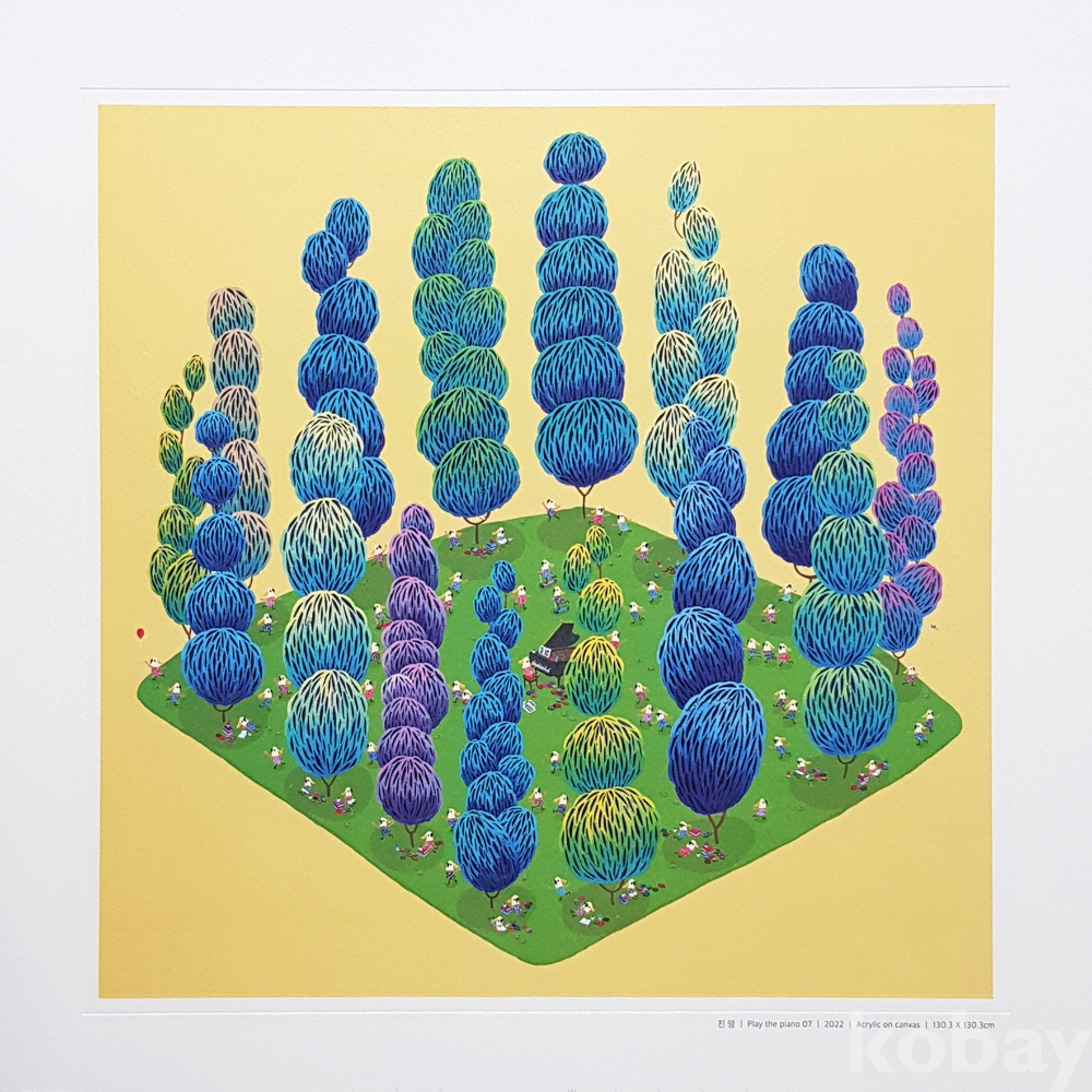 반복과 모방 속 자신만의 행복을 찾으려는 현대인들의 모습을 표현하고 있습니다.