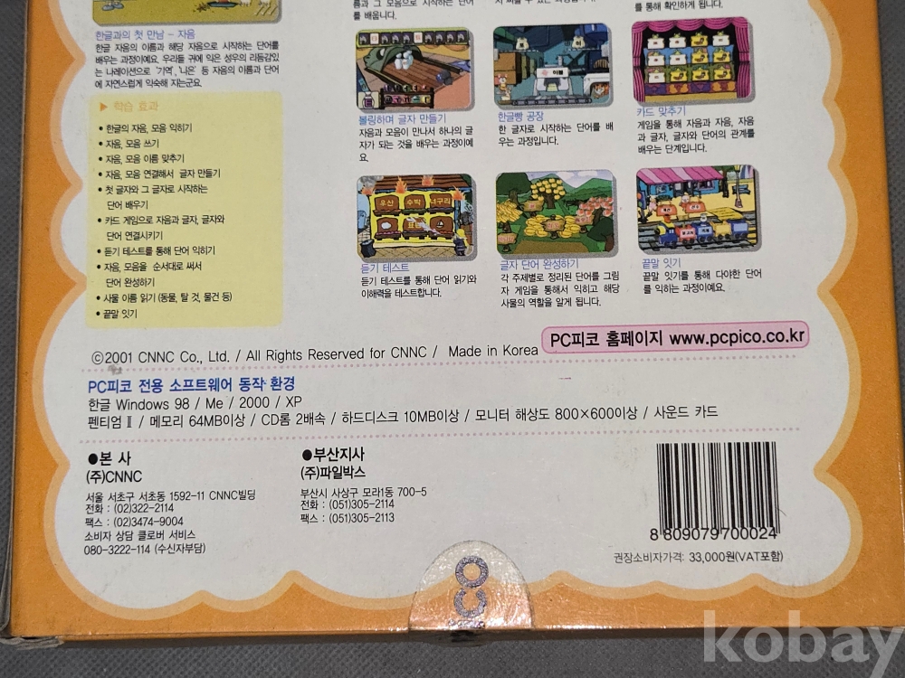 2001년 제조 == PC피코 = 안녕! 한글이에요== 어린이 교육자료 = 미개봉 박스형태