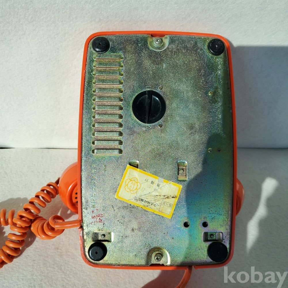시선을 단번에 사로잡는 강렬하고 경쾌한 주황색 바디는 70년대 특유의 모던하고 감각적인 디자인 유행을 고스란히 반영하고 있습니다. 다이얼 중앙에 선명하게 자리 잡은 금성사의 옛 왕관(Crown) 로고는 당시 국산 기술력에 대한 제조사의 굳건한 자부심을 보여줍니다. 손가락을 걸고 다이얼을 끝까지 돌렸다가 놓을 때 들리던 특유의 '차르르' 감기는 기계음, 그리고 수화기 너머로 들려오던 정겨운 목소리의 추억이 이 제품 구석구석에 짙게 배어 있습니다.