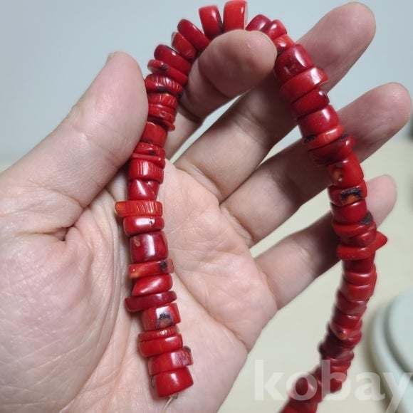 붉은 빛의 상당히 많은 산호늘 엮은 다발입니다. 목걸이 수공예하시는 분들이 한 개씩 포인트로 제작하여 사용하고 있습니다. 실제 산호 입니다 어항에 넣으셔도 좋은 소품입니다