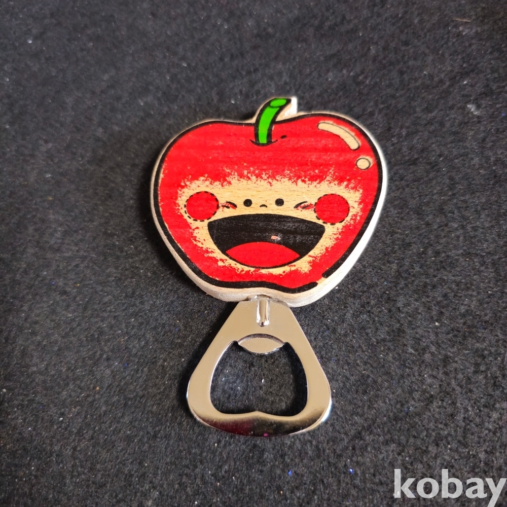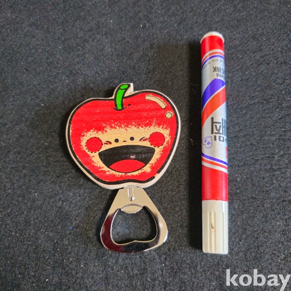 (((술자료/인테리어소품/오프너))) 오래전 일본에서만든 귀여운사과 케릭터 나무 오프너
