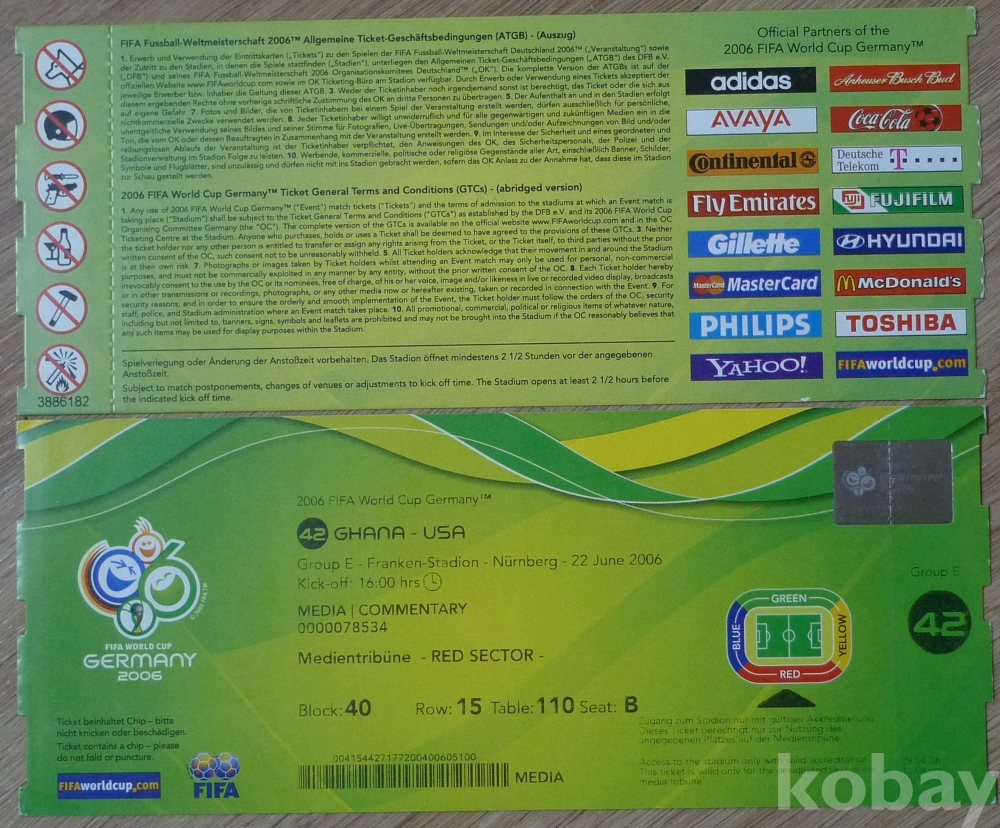 2006년 독일 월드컵 가나 VS 미국 경기 입장권