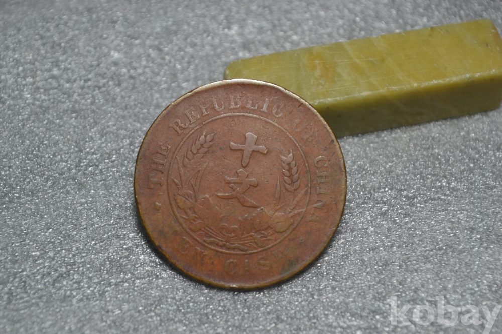 " 귀한종류 " ~ 오래되고 사용감이 많은 보품급의 진품 중국동폐 중화민국 개국기념폐 쌍기십문 10캐쉬 ".. 진품 중국동폐 민국시대..
