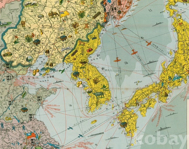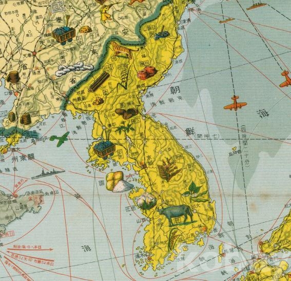 인삼과 쌀, 백두산에 호랑이가 그려져 있는 모습을 볼 수 있습니다. 또한 항공 경로와