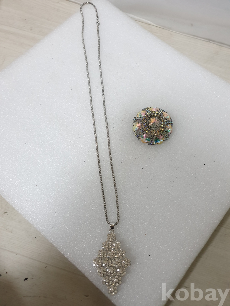 {천원경매} Y-3-2087 큐빅 목걸이+ 큐빅 브로치