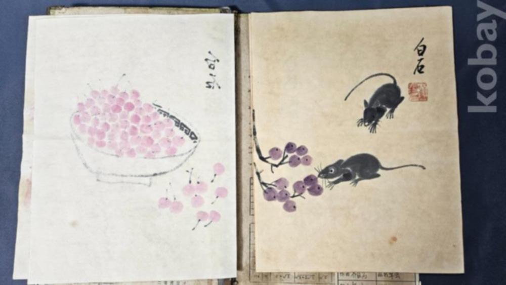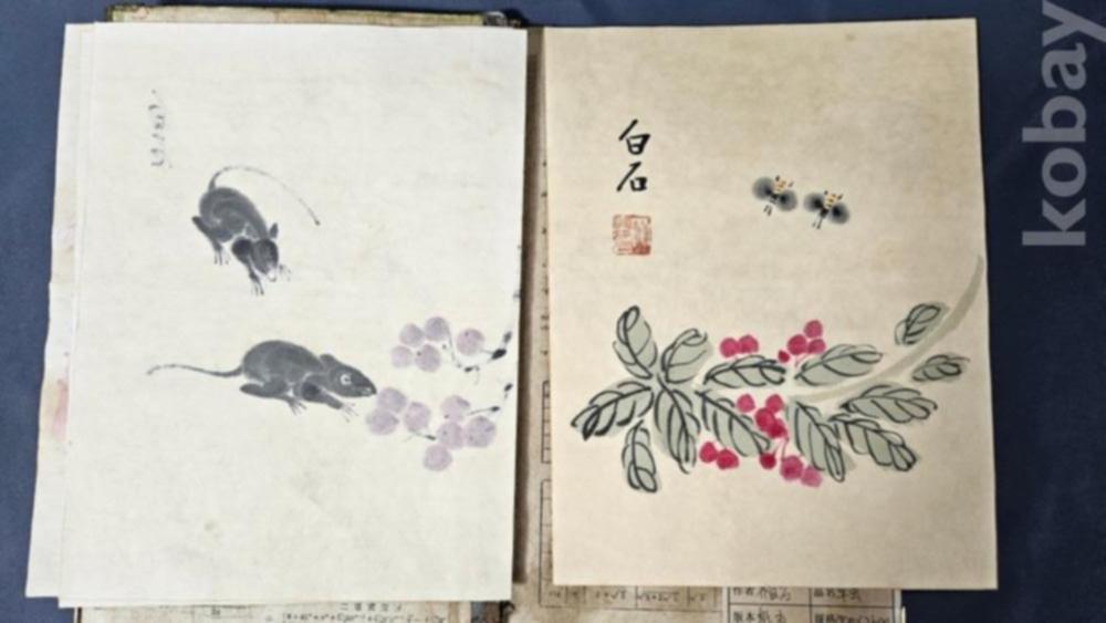 땟물이 묻은 근대사 첩 안에 보관되어 온 중국그림 5점 입니다.