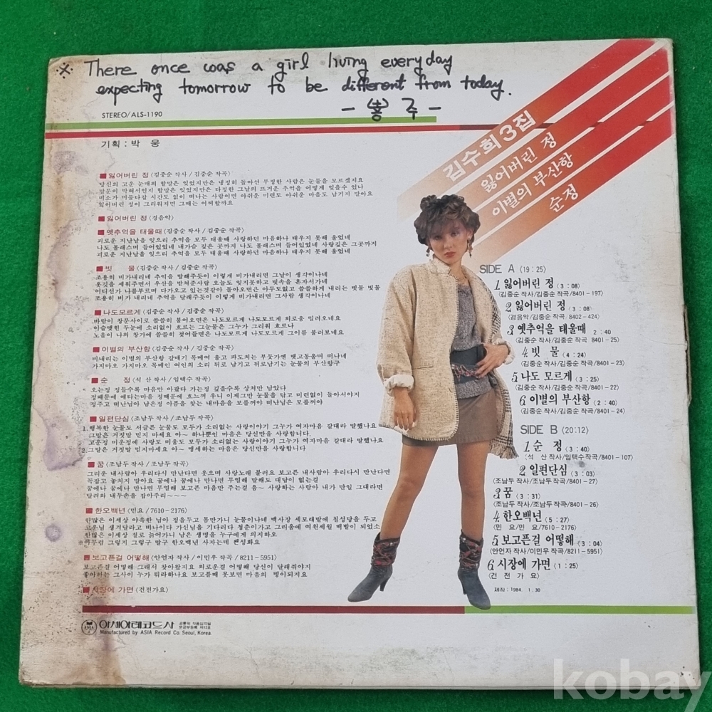 | 자켓상태 | VG : 주름, 접힘, 모서리 찢김 다수 | 음반상태 | VG : 생활 기스 다수, 가벼운 노이즈 존재 | 발매정보 | 알수없음 | 가사지여부 | 유 |