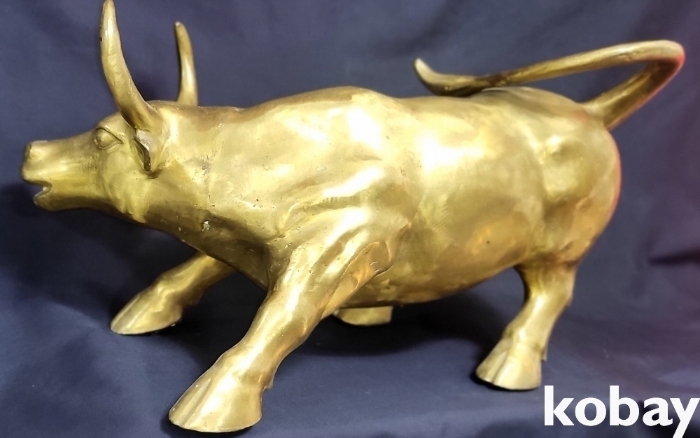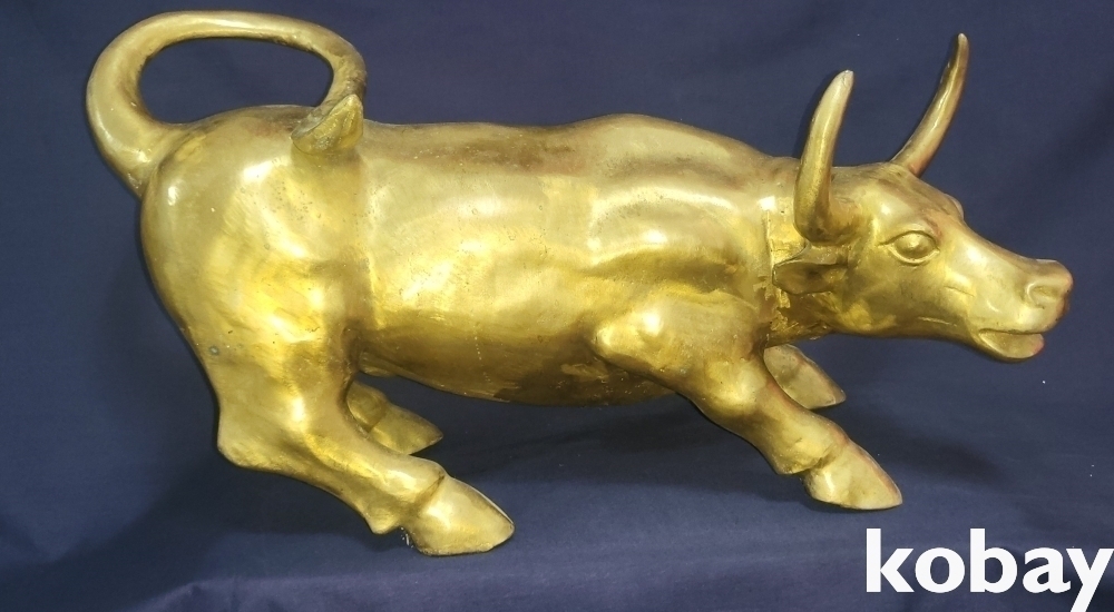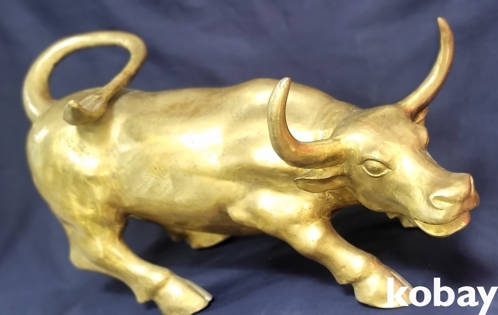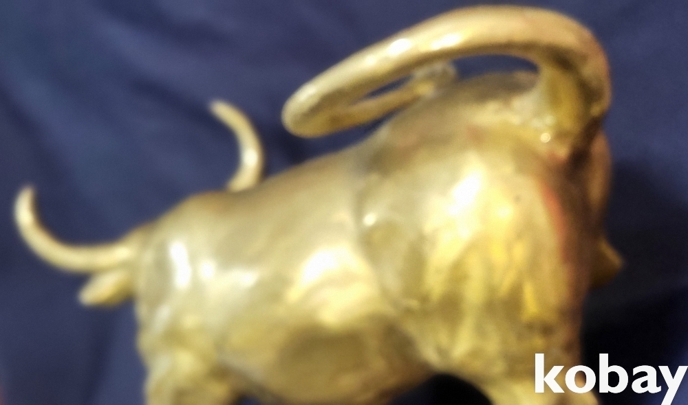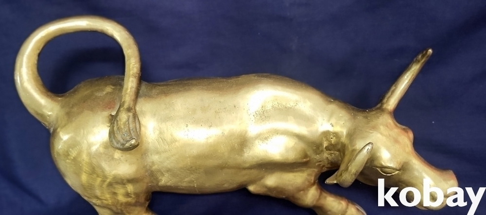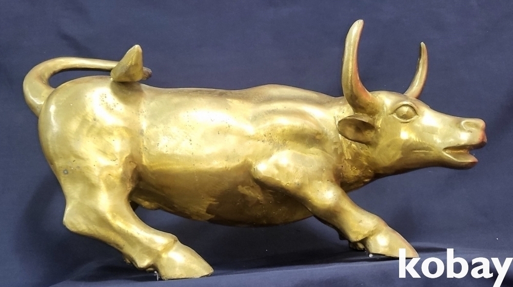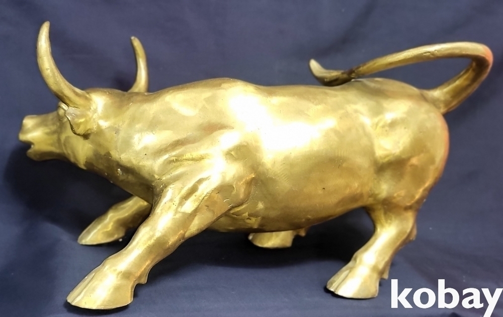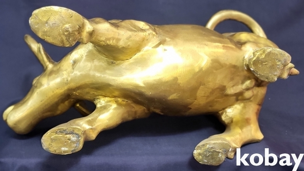 황동으로 만든 투우(鬪牛) 형상 조각품입니다,