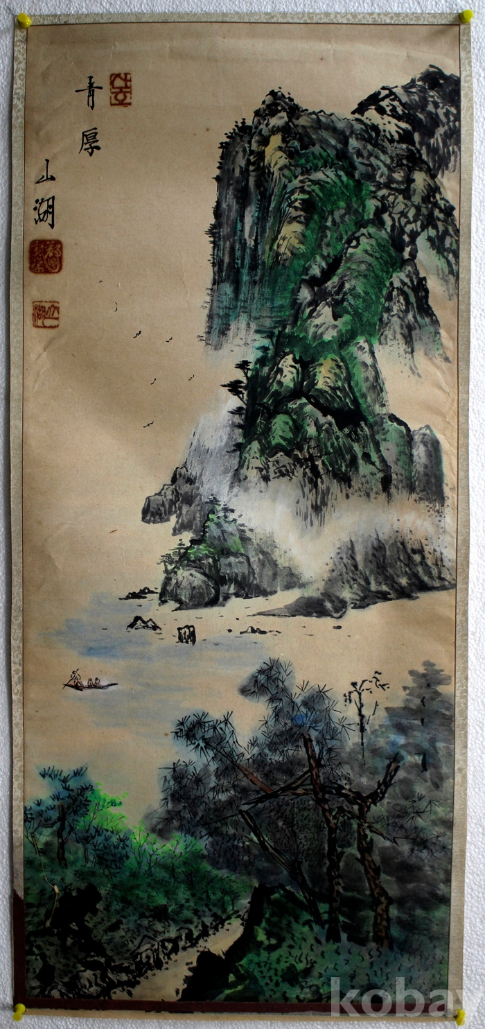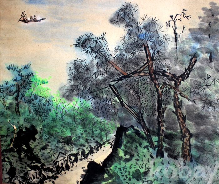 山湖(산호)의 채색이 멋진 하경 산수