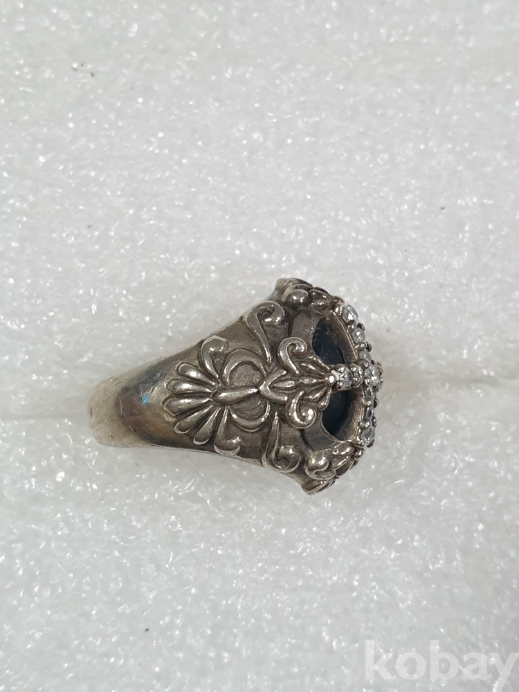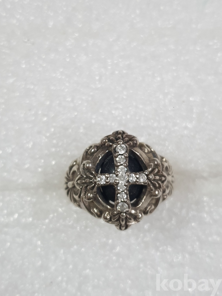 {천원경매}3-0843 십자큐빅 은반지 (약 13-14호)