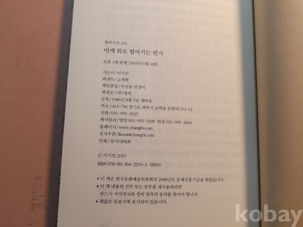 창비시선 * 이기인 시집 어깨 위로 떨어지는 편지