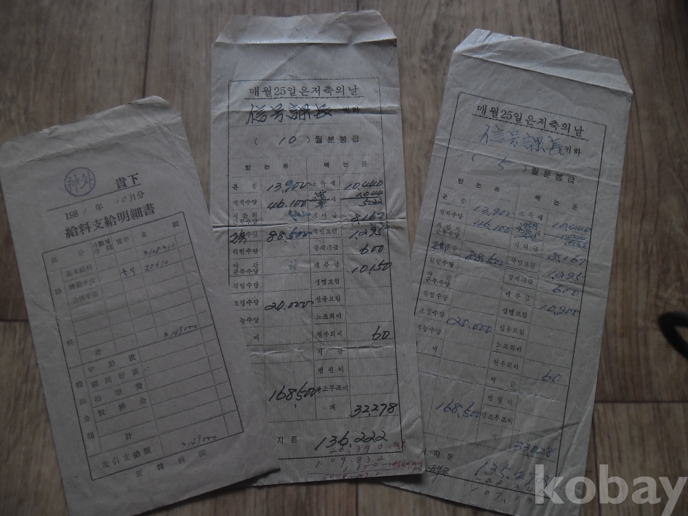 1980년대 철도청.신한병원 봉급명세봉투 3종