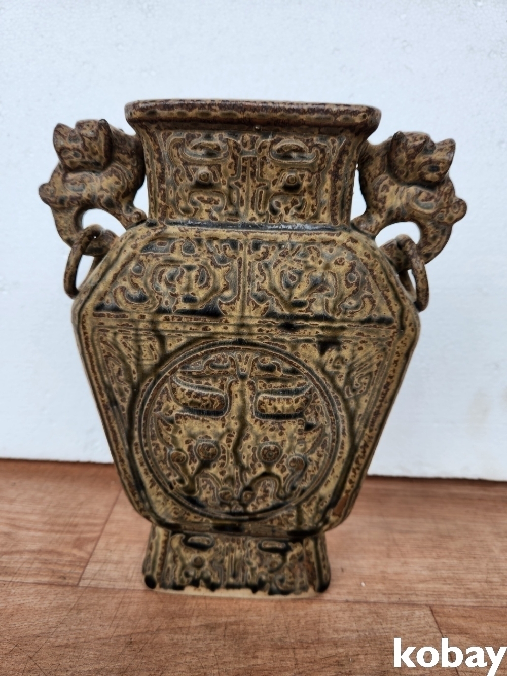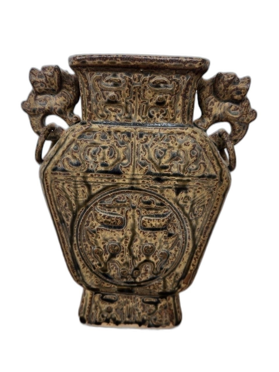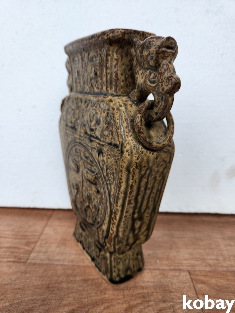 고리가 달린 사각 양이 편병 도자기 입니다.