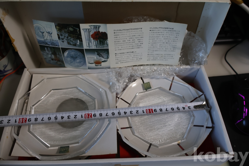 최고급 호야 크리스탈 접시 임니다 미사용 이며 한점 한점 멋진 커팅을 가진 묵직한 명품 임니다 상자는 세월의 흔적이 보임니다