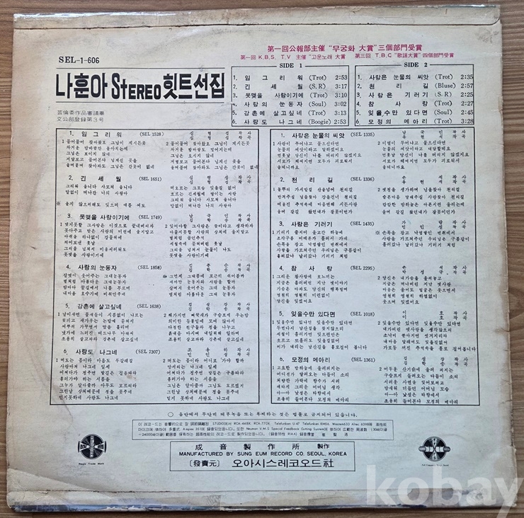 | 자켓상태 | VG : 주름, 접힘, 모서리 찢김 다수 | 음반상태 | EX : 재생에 영향 없는 가벼운 기스 존재 | 발매정보 | 초반 | 가사지여부 | 유 |