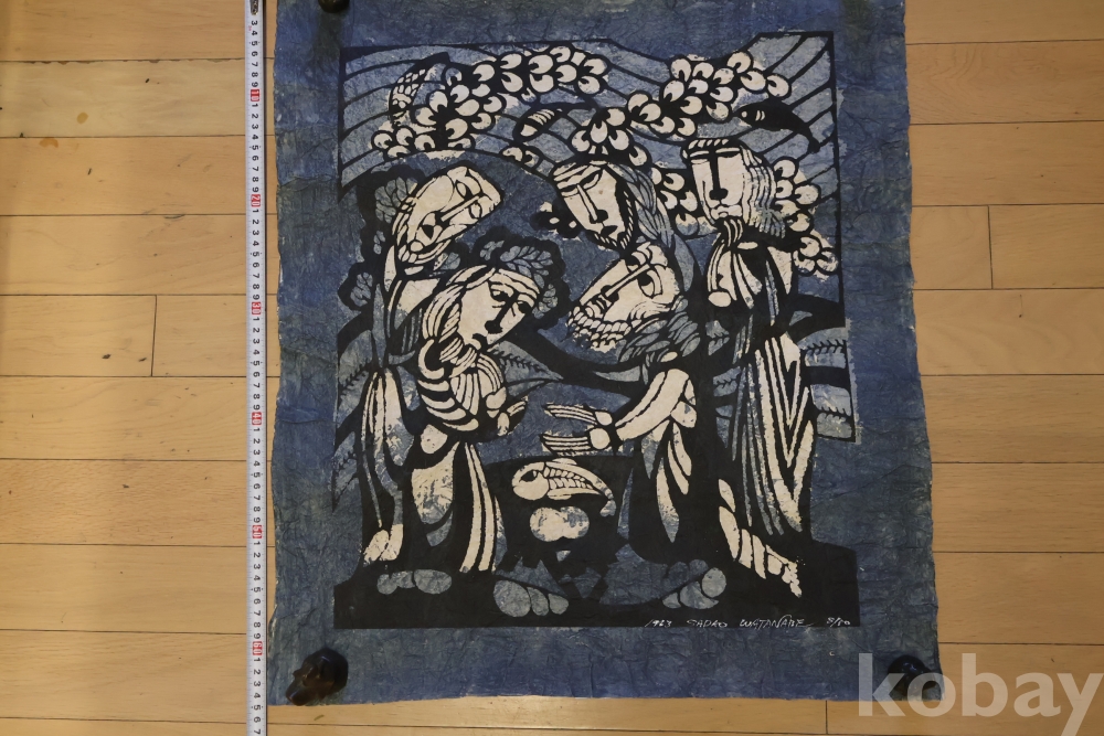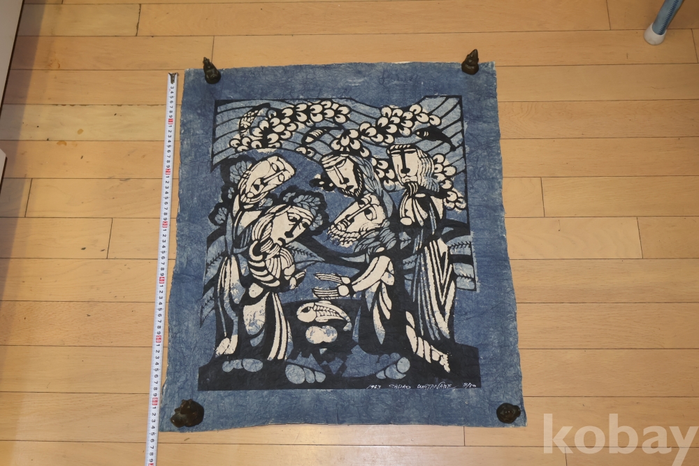 세계적인 성화화가 오타나베의 명화 임니다 제작년도 에디션 넘버 사인을 가진 명화 임니다 Sadao Watanabe was a Japanese artist best known for his prints that meld biblical imagery with the traditional Japanese folk art known as mingei. Watanabe's work portrays the Christian gospel with a distinctive use of crumpled wet paper mixed with mineral pigments suspended in soy milk, known as katazome. “I would most like to see them hanging where people ordinarily gather,” the artist said of his work. “Because Jesus brought the gospel for the people.” Born on July 7, 1913 in Tokyo, Japan, his parents died when he was 10. Now an orphan, Watanabe was invited to church by a neighbor, an event that changed the course of his life. During his adolescence, he worked as an apprentice in a fabric dyeing shop under the renowned textile artist Keisuke Serizawa. Today, the artist’s work has been internationally recognized, with his works in the collections of The Museum of Modern Art in New York, the Art Institute of Chicago, and the National Museum of Art in Tokyo. The artist died on January 8, 1996 in