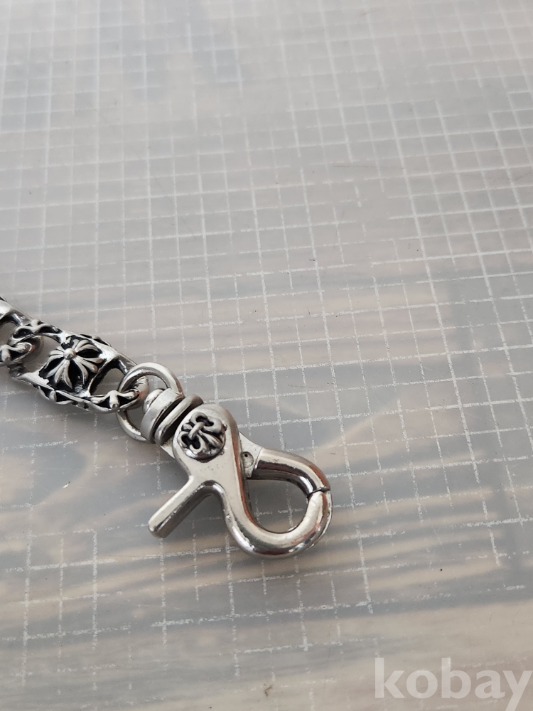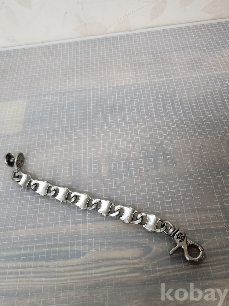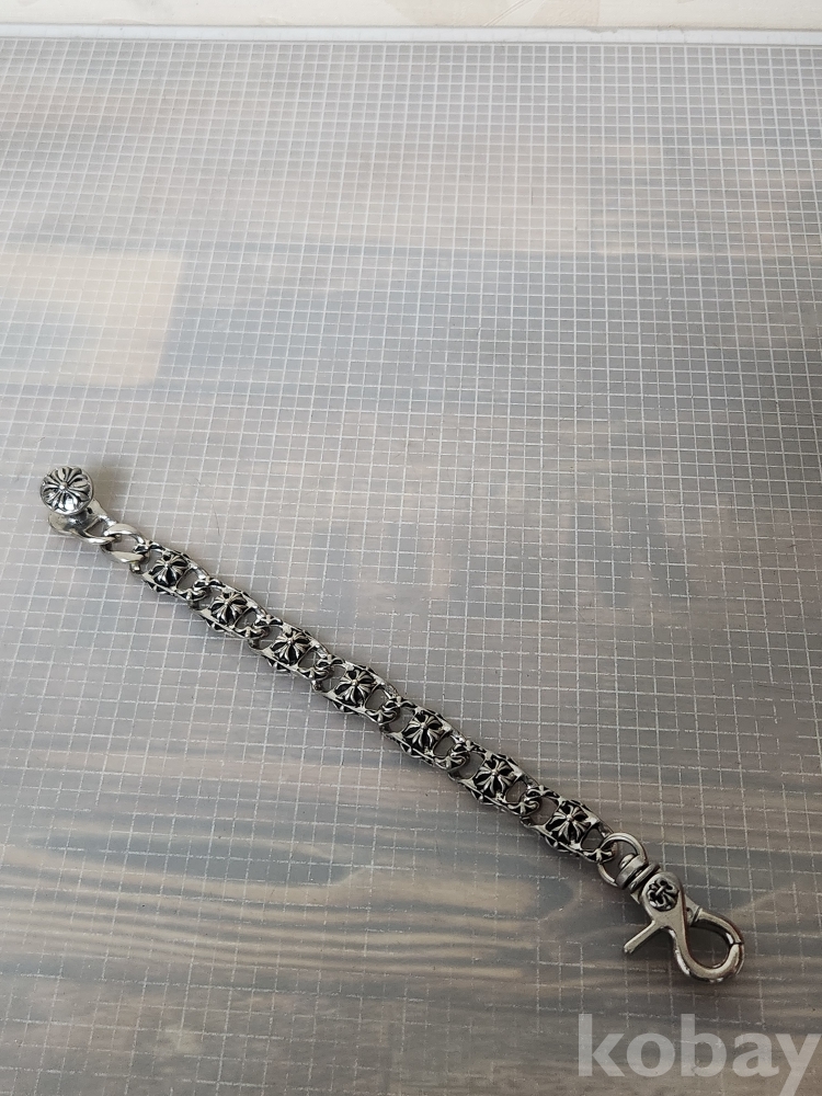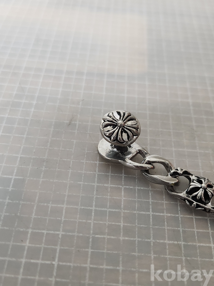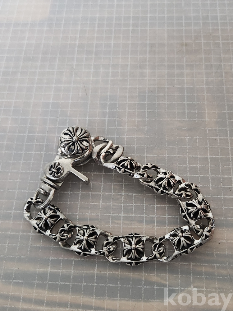 (땡처리) 크롬하츠 스타일의 실버컬러 팔찌입니다. 플로랄 크로스 모티브가 반복되어 디자인되었으며, 견고한 클립 잠금 장치가 특징입니다. 남성분들에게 인기 있는 디자인으로, 캐주얼룩이나 스트릿 패션에 포인트를 주기 좋습니다