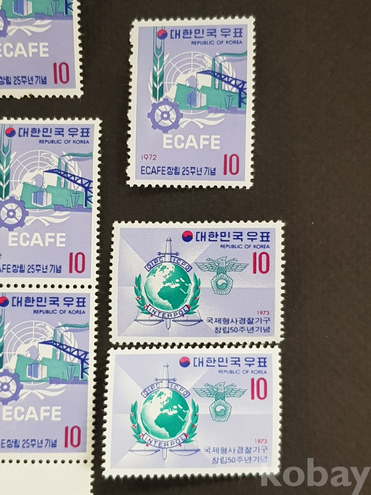 대한민국 우표-ECAFE창립 25주년 기념(1972), 국제형사경찰기구창립50주년기념(1973)/ 약 100매